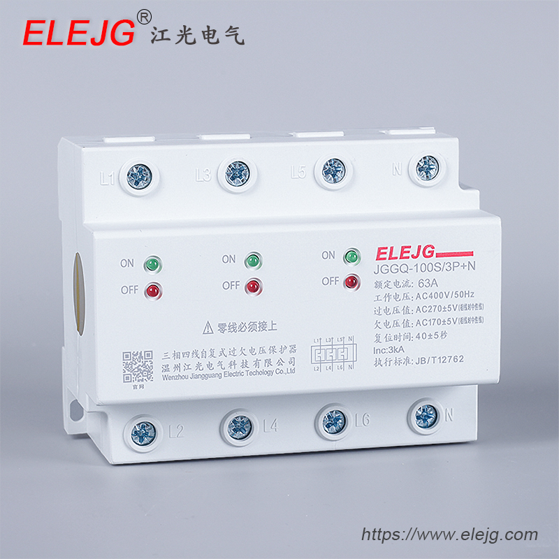 三相四线自复式过欠压保护器采用控制线路采用高速微低功耗处理器为核心、磁保持继电器为主电路、模数化标准设计,当供电线路出现过电压、欠电压时,保护器能在持续高压冲击下迅速、安全地切断电路,避免异常电压送入终端电器造成事故的发生,当电压恢复正常值,保护器将在规定时间内自动接通电路,确保终端电器在无人值守情况下正常运行。