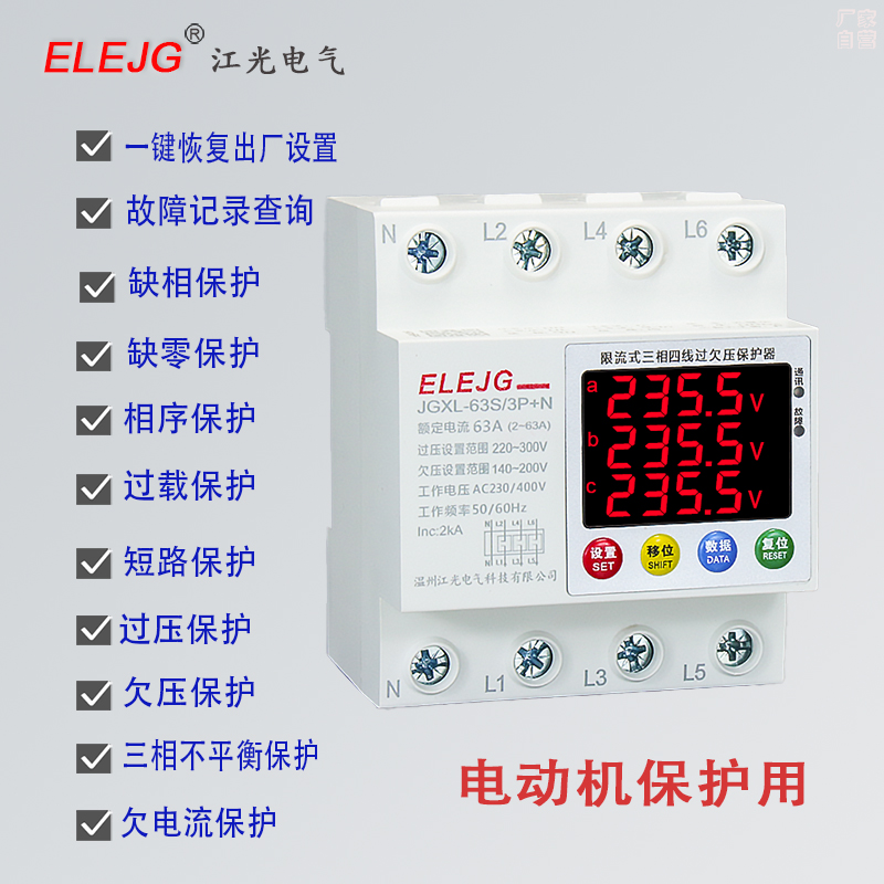 关键词:三相四线自复式过欠压保护器,三相四线限流式保护器,相序保护器,缺相保护器,缺零保护器,限流保护器,缺相缺零相序过载短路三相不平衡欠流三相四线限流式过欠压保护器