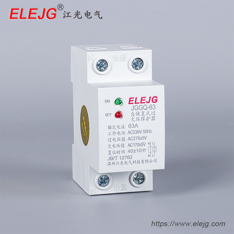 JGGQ-63自复式过欠压保护器采用控制线路采用高速微低功耗处理器为核心、磁保持继电器为主电路、模数化标准设计,当供电线路出现过电压、欠电压时,保护器能在持续高压冲击下迅速、安全地切断电路,避免异常电压送入终端电器造成事故的发生,当电压恢复正常值,保护器将在规定时间内自动接通电路,确保终端电器在无人值守情况下正常运行。